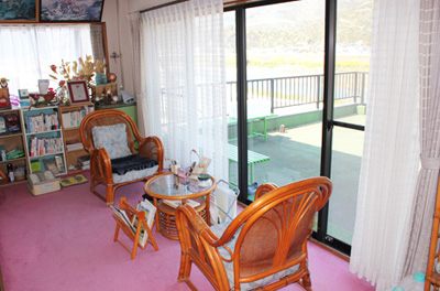 有田川が一望出来る待合室
